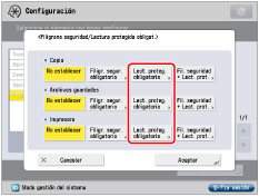 El modo Lectura protegida no garantiza la restricción de las copias no autorizadas. Es posible que, según la combinación de opciones y las salidas, no pueda restringir las copias no autorizadas ni analizar la información de seguimiento, como los documentos con una imagen que ocupa toda la página.