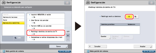 Especifique los dominios a los que desea permitir el envío de documentos por e-mail o I-fax.