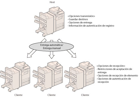 La información de dispositivo se puede compartir entre equipos del mismo modelo (imageRUNNER ADVANCE 4251i/4245i/4235i/4225i). No obstante, es posible que alguna información no se entregue correctamente, según los productos opcionales que estén disponibles para usar en el equipo.