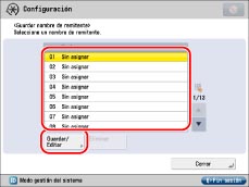 Puede guardar un máximo de 99 nombres de remitente (01 a 99).