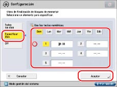 Si selecciona [Todos los días], seleccione un número ([1] a [5]) → introduzca la hora de finalización con