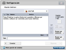 Si no está instalada la tarjeta de fax ni se ha activado el Kit de Fax Remoto: nombres y direcciones de e-mail