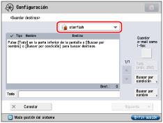 El número de los resultados de búsqueda mostrados no superará el límite máximo establecido en <N.º máx. direc. búsqueda> en [Guardar servidor LDAP] de [Establecer destino] (Configuración). Si no aparece el destino que desea, aumente el valor de <N.º máx. direc. búsqueda>o cambie los criterios de búsqueda. (Consulte "Guardar un servidor LDAP".)