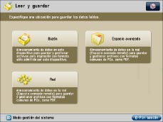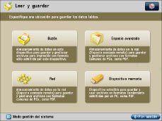Puede especificar las opciones de visualización para la ubicación de almacenamiento que aparece al pulsar [Leer y guardar] o [Archivos guardados].