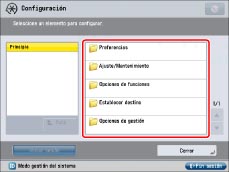 Si se establecen las opciones de administrador del sistema y se usa Gestión de ID de departamentos