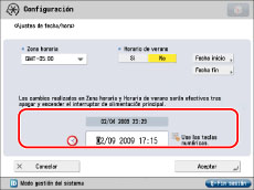 Si configura el horario de verano, el equipo adelanta automáticamente la hora del equipo en la fecha especificada.