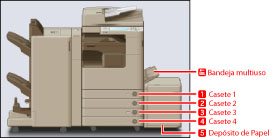 Al menos uno de los alojamientos de papel, además de la bandeja multiuso, debe ponerse en 'Sí'.