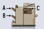 Bandeja B: 2 Copia, 2 Archivos guardados, 2 Impresora Bandeja C: 1 Recepción, 1 Fax, 1 Otra |