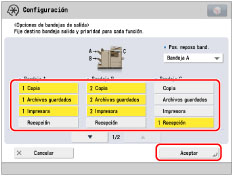 Puede designar una bandeja de salida para múltiples funciones.