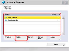 Si pulsa [Aceptar] sin introducir un nombre en el campo del nombre, se utilizará la dirección URL como nombre.