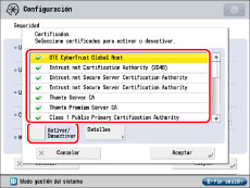 Seleccione un certificado → pulse [Activar/Desactivar].