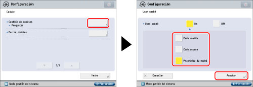 La opción prefijada para [Gestión de cookies] es 'Aceptar'.