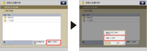 只有未创建“个人空间”时才显示[创建个人空间]。(如果已创建了“个人空间”,此按键变为[删除个人空间]。)