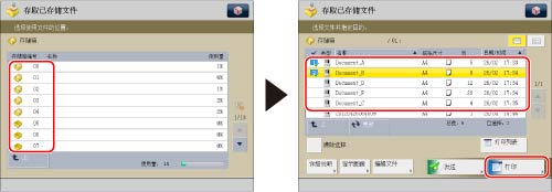 如果使用“合并文件后打印”模式合并和打印多个文件,则使用“存取已存储文件”的默认设置而不使用文件各自的设置来打印这些文件。不过,每个文件的设置不会被更改或删除,并且保持创建文件时的设置。