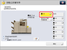 如果预先将信息存储到本机中,则添加到每个纸盒中的纸张类型的图标就可以显示在纸张选择屏幕上。(请参阅“注册/编辑自定义纸张类型”)
