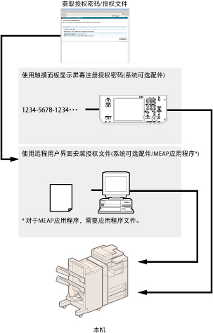 根据系统可选配件/MEAP应用程序,可能需要进行授权注册。