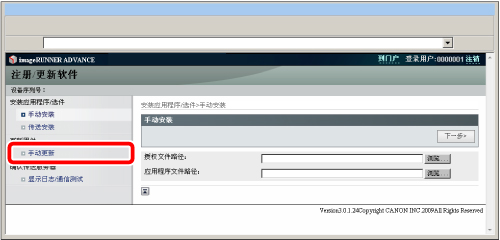 可以使用“远程用户界面”的“注册/更新软件”功能将本机的固件更新到最新的版本。