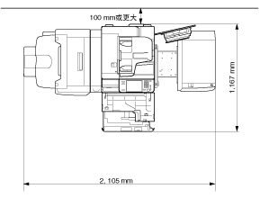 安装了“双面自动输稿器-AG1”、“内置装订处理器-D1”和“纸仓-B2”时