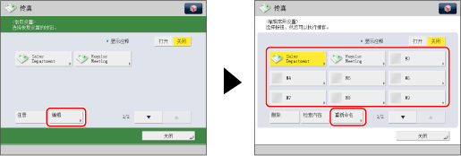 按[编辑]→选择要编辑名称或注释的按钮→按[重新命名]。