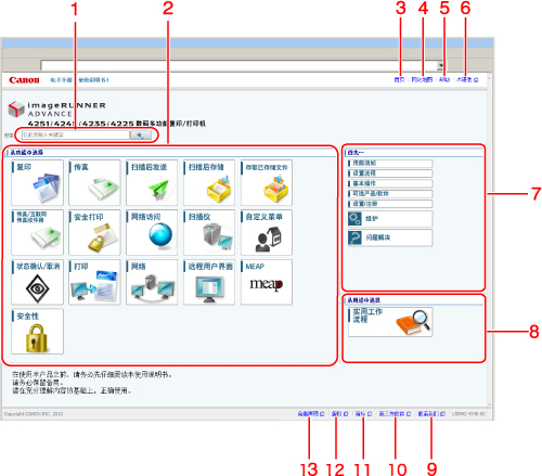 显示电子手册的站点地图。 |