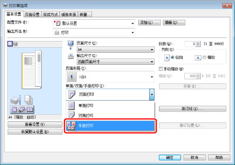 在单击[手册]后显示的[手册方式的详细设置]对话框,可以指定手册的详细设置(如布局等)。