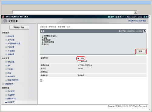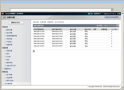 单击[备份/恢复日志]→检查备份是否成功完成。