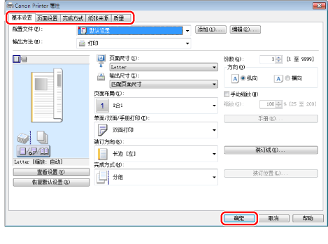 [基础设置]选项卡包含一些驱动程序的基础设置。可在[基础设置]选项卡中配置的设置,也可在其它选项卡中配置。