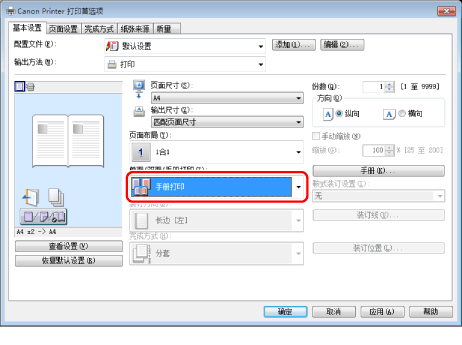 执行“手册打印”时,无法设置[基础设置]/[完成方式]选项卡的[完成方式]选项。