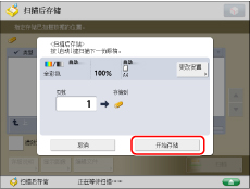 一次最多可以扫描并存储999页。如果使用输稿器扫描双面原稿,最多可以存储1,000页。一旦达到可以扫描的原稿的最大数量,则会出现一条信息询问是否存储。