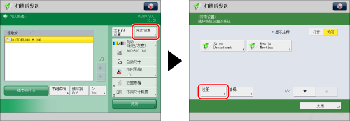 如果为“设置/注册”的[功能设置]中的[用于文件发送/浏览认证的信息]选择[设备登录认证信息],文件接收方的密码不会存入常用设置按钮中。有关[用于文件发送/浏览认证的信息]设置的详细信息,请参阅“指定文件服务器的认证方法”。