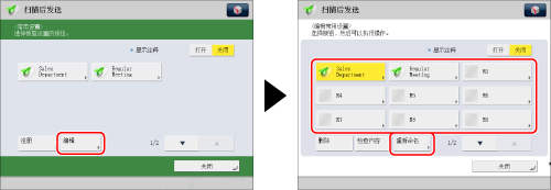 按[编辑]→选择要编辑名称或注释的按钮→按[重新命名]。