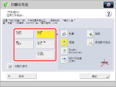 如果以PDF、XPS或OOXML格式发送,可以选择附加设置。有关设置PDF、XPS或OOXML各类型的说明,请参阅以下内容: