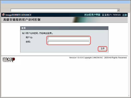 还可以在地址栏中输入如下所示的[高级存储箱的用户访问控制]的URL进行登录。(区分大小写。)