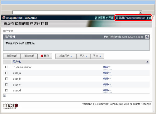 单击[注销]完成操作。如果没有单击[注销]就关闭网络浏览器页面,则无法正确执行注销过程。请注意,在这种情况下需要大约30分钟才能再次登录。