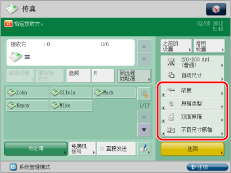可以将设置注册到“传真”屏幕上显示的快捷键中。可以从[选项]注册最多四个所需按钮。