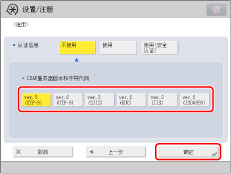 为<LDAP服务器版本和字符代码>选择项目→按[确定]。