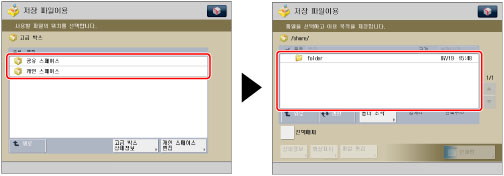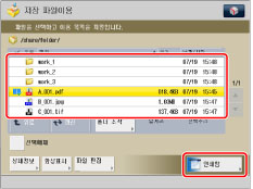 폴더에 두 개 이상의 문서가 저장된 경우 [명칭]이나 [날짜/시각]을 눌러 파일 리스트를 정렬할 수 있습니다.