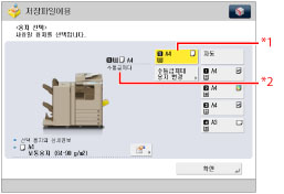 인쇄 대기 중인 예약 작업이 2개 이상인 경우, 예약된 작업에 지정된 최근 용지 크기/종류만 용지선택 화면과 일반 복사 기본 기능 화면에 나타납니다.