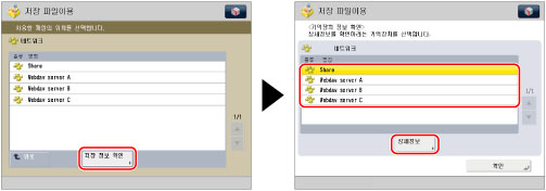 [저장 정보 확인]을 누르고 → 원하는 저장 위치를 선택한 다음 → [상세정보]를 누릅니다.
