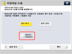 이 기능을 설정하려면 먼저 관리자가 Document Scan Lock 모드에 대해 QR 코드를 사용하도록 설정해야 합니다. (See "Document Scan Lock의 코드 선택 (TL 코드/QR 코드).")