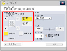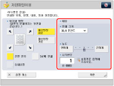 [부수인쇄 옵션]을 [부수번호 인쇄 옵션 설정]에서 '해제'로 설정된 경우 [전면 인자] 및 [5곳에 인쇄]가 회색으로 처리되고 선택할 수 없습니다. (See "부수 번호 인쇄 옵션.")