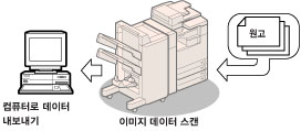 스캔하여 저장 기능을 사용하면 스캐너 유니트에서 스캔되었거나 컴퓨터에서 작성된 문서 데이터를 저장할 수 있습니다. 저장된 데이터를 지정된 시간에 인쇄하거나 동시에 처리할 수 있도록 개별적으로 저장된 데이터나 컴퓨터에 작성된 데이터와 결합할 수 있습니다.