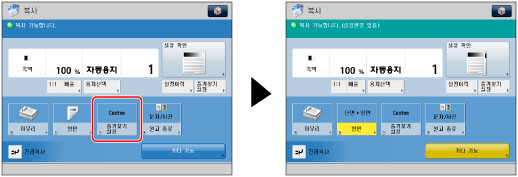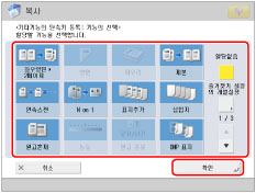 복사 기본 기능 화면에서 확인 화면을 표시하지 않고 설정을 불러올 수 있습니다.