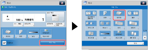 [자동소트]를 '설정'으로 지정한 경우 원고를 피더에 세트할 때 소트 또는 시프트 소트 모드가 자동으로 설정됩니다. (See "자동 소트 사용.")