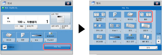 Booklet Finisher-G1을 장착한 경우에만 중철 모드 및 분할 제본 모드를 설정할 수 있습니다.