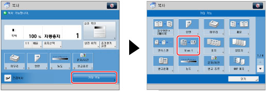 복사 기능의 경우 다음 원고 묶음을 스캔하기 전에(예를 들어 원고 묶음 사이) 복사 매수 및 양면원고 모드 설정을 변경하거나 지정할 수 있습니다.