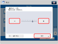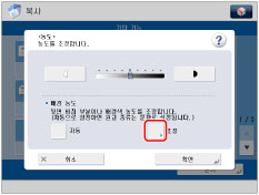 <배경 조정>로 [조정]을 눌러 배경 농도를 조정할 경우 [자동] 설정이 취소됩니다. 또한, [조정]에서 수동 조정하는 동안 [자동]을 누르면 조정이 취소됩니다. 기기에서 배경에 맞게 농도를 자동으로 조정합니다.