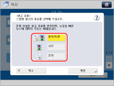 기능 설정(설정/등록 화면)의 복사에서 사진 모드를 '설정'으로 설정한 경우 [인쇄사진]을 선택할 수 있습니다. (See "인쇄사진 모드로 복사.")