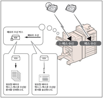 아래에 설명한 경우에는 팩스/I-팩스 박스에 더 이상 파일을 저장할 수 없습니다. 문서 또는 페이지 수는 하드 디스크의 남은 용량에 따라 달라질 수 있습니다.
