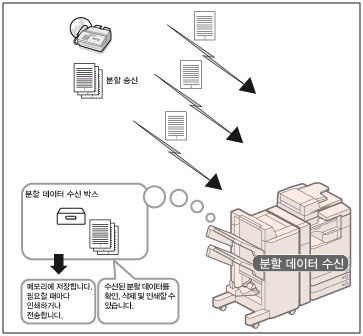분할된 데이터의 상태를 확인하고 분할 데이터 수신 박스의 잔여 용량을 확인합니다.